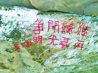 紅軍寫在龍舌巖上的話:繼續斗爭,再尋光明。光明日報記者陳海波攝/光明圖片