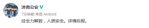 濟南市公安局剛剛通報稱,經全力解救,人質安全。