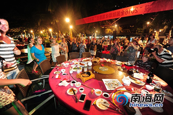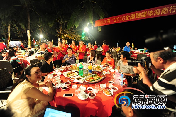 參加“全域旅游 海南范例——2016全國融媒體海南行”大型采訪活動(dòng)的52家全國融媒體記者在三亞東海龍宮餐廳欣賞椰風(fēng)海韻,品嘗地道海南美食。南海網(wǎng)記者 沙曉峰 攝