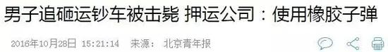 27日晚間,運(yùn)鈔車的所屬公司東莞市駿安押運(yùn)有限公司對北青報記者稱,經(jīng)初步調(diào)查,事件系因男子砸擊車窗,押運(yùn)人員感到人身及押運(yùn)財產(chǎn)安全受到威脅。該公司稱,護(hù)衛(wèi)人員是在多次警告無效的情況下才開的槍。
