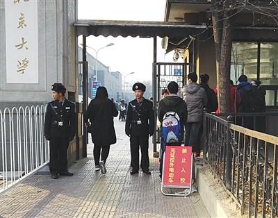 昨天下午,記者來到了北京大學東門口,發現門口旁邊的地上豎著紅色的警示牌,上面寫著“無證校外電動車禁止入校”。門衛告訴記者,現在校外的電動車如果沒有辦北京大學非機動車通行證就不讓進校。”
