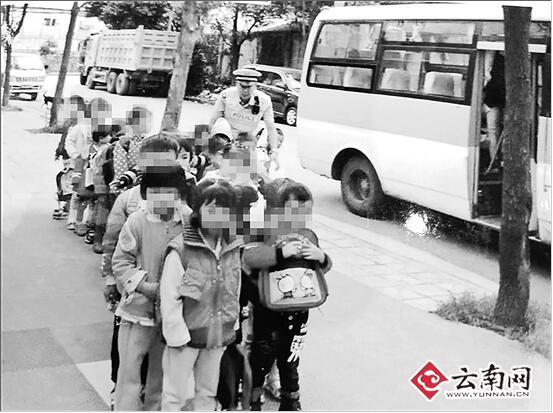 去年9月7日校車被查處后,交警安排轉運小朋友。