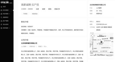子虛烏有的單位和崗位,這樣的招聘信息如何能夠發布?8日下午,北青報記者以餐飲企業經營者身份,嘗試在多家網站發布“高薪招聘扛尸員”信息。體驗發現,無需提交企業營業執照,也沒有經過任何審核,即可發布上述招聘,并且可以留下任意電話號碼作為聯系電話。