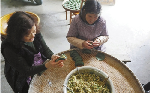 “每年快到清明節的時候,我都會包清明粿,除了自己吃,也想給在外工作的兒子媳婦帶些去嘗嘗!币晃话⒁淌帜_麻利,再加上周圍的鄰居一起幫忙,一會就包了一蒸屜的清明粿。鄉鎮里手工制作清明粿的氣氛濃郁,例如莪山鄉、新合鄉、百江鎮等地的鄉里鄉親,“今天你幫我家包,明天我幫你家包。包清明粿要大家一起包才有趣!奔易『洗遴l的大媽一邊和大家閑話家常一邊動手包粿子。