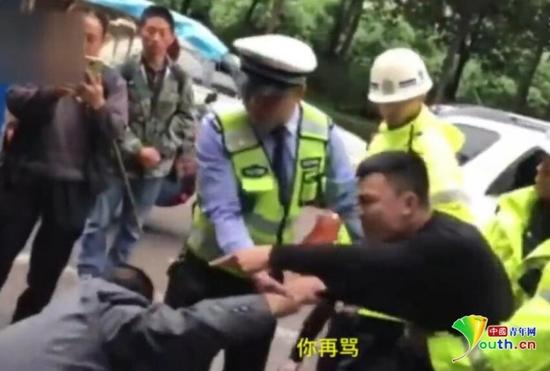 經(jīng)初查,2017年4月25日上午,廣元市公安局交警支隊(duì)直屬二大隊(duì)雪峰中隊(duì)按照工作安排在轄區(qū)集中開(kāi)展主要干道交通秩序整治,重點(diǎn)對(duì)部分路段亂停亂放車輛及違法停車候客三輪車進(jìn)行勸離。10時(shí)許,當(dāng)執(zhí)勤輔警盛克林在苴國(guó)路第一人民醫(yī)院路段勸離違法停放一輛三輪車時(shí),該三輪車駕駛?cè)送蝗挥米约菏褂玫墓照让土Υ翐魣?zhí)勤輔警盛克林胸口,同時(shí)不斷辱罵并用手抓扯盛克林衣領(lǐng)進(jìn)行推搡,此時(shí)輔警盛克林依然保持克制,未作出任何過(guò)激行為,隨后該三輪車駕駛?cè)艘恢辈婚g斷對(duì)輔警盛克林進(jìn)行言語(yǔ)辱罵、人身攻擊,長(zhǎng)時(shí)間的辱罵導(dǎo)致輔警盛克林未能控制住情緒,脫掉執(zhí)勤警服沖到該三輪車駕駛?cè)嗣媲斑M(jìn)行言語(yǔ)還擊,一度情緒失控。后增援警力將輔警盛克林及違法停放的三輪車駕駛?cè)艘黄饚щx現(xiàn)場(chǎng)。
