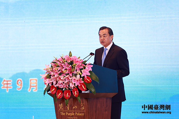 中共中央臺辦、國務院臺辦主任王毅在海峽兩岸企業家紫金山峰會開幕式上致辭(中國臺灣網 王偉 攝)