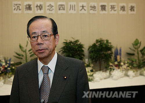5月21日,在日本首都東京中國駐日本大使館,日本首相福田康夫吊唁中國四川汶川大地震的遇難者。新華社記者任正來攝