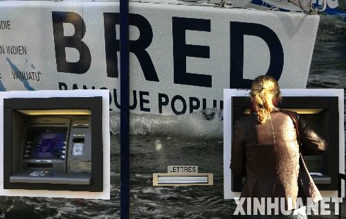 10月10日,在法國首都巴黎,一名市民在法國大眾銀行的自動提款機上取款。隨著金融危機愈演愈烈,銀行破產成為很多國家普通民眾最為關心的問題。 新華社記者張玉薇攝