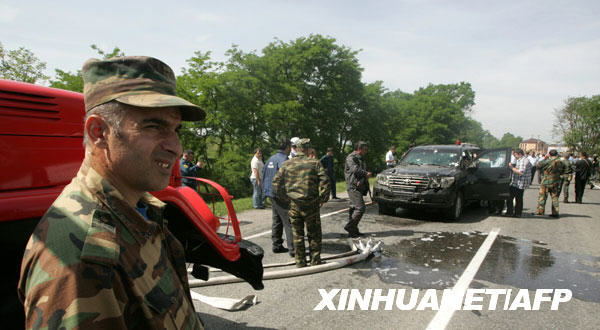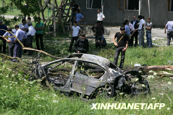 6月22日,俄羅斯警察和調查人員在納茲蘭市的汽車炸彈襲擊現場檢查。當日,俄羅斯印古什共和國總統葉夫庫羅夫的車隊在納茲蘭市遭遇路邊汽車炸彈襲擊。葉夫庫羅夫身受重傷,其3名保鏢死亡,另有2人受傷。新華社/法新