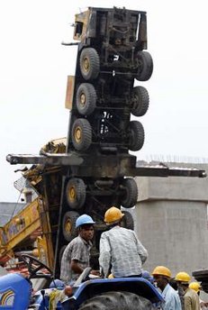 中新網(wǎng)7月14日電 綜合外電報(bào)道,7月13日,在印度首都新德里高架橋坍塌事故清理現(xiàn)場,有至少3臺(tái)起重機(jī)倒塌,造成至少4人受傷。