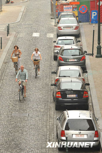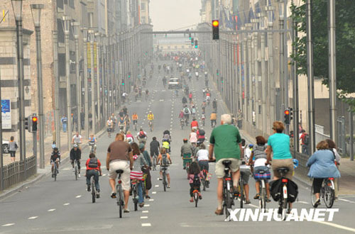 9月20日,在比利時(shí)首都布魯塞爾,人們騎自行車上街。當(dāng)天是布魯塞爾一年一度的“無(wú)車日”,政府鼓勵(lì)市民騎自行車或乘坐公共交通工具出行,樹立綠色城市交通的環(huán)保理念。新華社記者武巍攝
