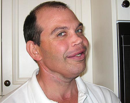 中新網(wǎng)9月27日電 英國46歲男子加萊格8年前因罹患口腔癌而嚴重毀容,他利用身體其他部分的骨骼植入面部,經(jīng)過16次手術(shù)重塑臉龐,現(xiàn)在看起來已變成另一個人。
