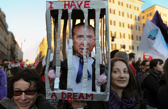 12月5日,意大利首都羅馬爆發大規模游行,數十萬市民參與游行并高舉標語要求貝盧斯科尼辭職。游行示威的組織者將這一天稱作“No Berlusconi Day”(沒有貝盧斯科尼的一天)。