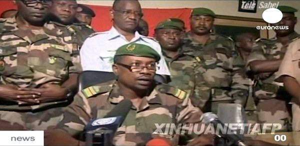 資料圖片:這張2010年2月19日的電視截圖顯示,尼日爾政變軍隊發(fā)言人阿卜杜勒-卡里姆·古可耶在尼日爾首都尼亞美發(fā)表電視講話。西非國家尼日爾局勢突變。位于首都尼亞美的總統(tǒng)府18日下午發(fā)生持續(xù)約一小時的槍戰(zhàn),軍隊士兵攻入總統(tǒng)府,帶走總統(tǒng)坦賈。政變軍人當(dāng)晚宣布,中止憲法并解散各機(jī)構(gòu)。聯(lián)合國秘書長潘基文、非洲聯(lián)盟以及西非國家經(jīng)濟(jì)共同體(西共體)對尼日爾事態(tài)表示關(guān)切。新華社/法新