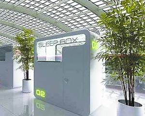Sleep Box,睡眠盒子,這是為那些想在機場睡個好覺的人設計的。包廂面積只有2.8平方米,高2.3米,床占到房間近一半。房間內(nèi)有通風系統(tǒng)、液晶電視、無線上網(wǎng)、電源插座和行李空間,還裝有除菌石英燈,在每位住客離開后進行消毒殺菌。房租實時計算,從15分鐘到幾小時不等。