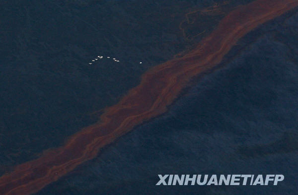 美國海岸警衛(wèi)隊4月28日說,美國國家海洋和大氣管理局估計,在墨西哥灣沉沒的海上鉆井平臺“深水地平線”底部油井每天漏油大約5000桶,5倍于先前估計數(shù)量。鉆井平臺20日夜間爆炸,引發(fā)大火,大約36小時后沉入墨西哥海灣,11名工作人員死亡。鉆井平臺底部油井自24日起漏油不止。新華社/法新