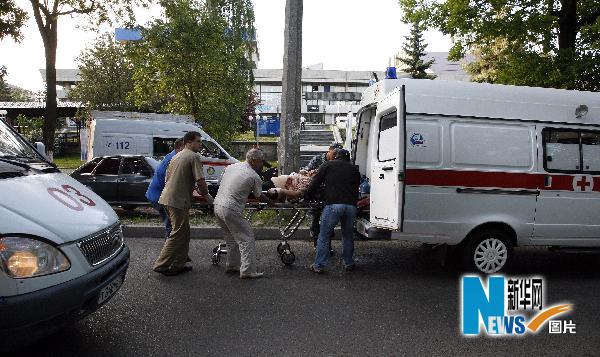 5月26日,救援人員在俄羅斯南部城市斯塔夫羅波爾的爆炸現場救助傷員。當日,斯塔夫羅波爾市中心發生爆炸事件,共造成6人死亡,約40人不同程度受傷。斯塔夫羅波爾護法機關的一名知情人士說,是一輛汽車發生了爆炸,不排除是一次恐怖襲擊。新華社/法新
