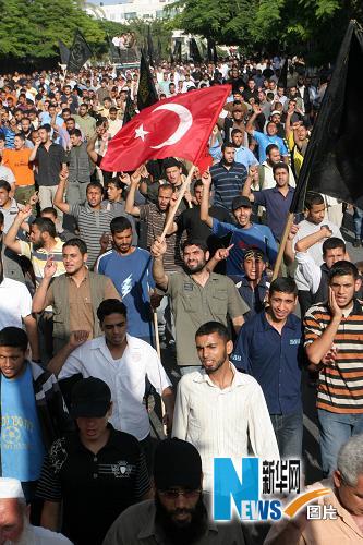 5月31日,巴勒斯坦民眾在加沙城舉行集會,抗議以色列襲擊國際救援船隊并造成重大人員傷亡。新華社發