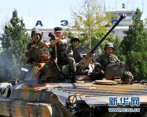 6月14日,士兵在吉爾吉斯斯坦南部城市奧什機場附近巡邏。新華社/法新