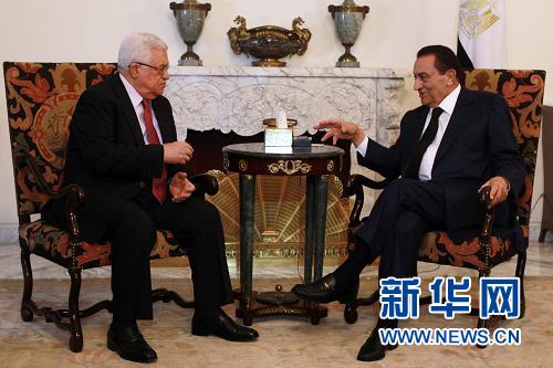7月18日,埃及總統穆巴拉克(右)在開羅的總統府會見巴勒斯坦民族權力機構主席阿巴斯。當日,穆巴拉克在開羅分別會見美國中東問題特使米切爾、巴勒斯坦民族權力機構主席阿巴斯和以色列總理內塔尼亞胡,重點討論了巴以直接談判問題。新華社/法新