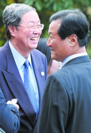 二十國集團(G20)財長與央行行長會議22日在韓國慶州拉開帷幕,匯率問題成為會議的核心議題。由于匯率問題關系到各方的切身利益,因此被認為是慶州財長會議中最難啃的“骨頭”。據悉,當天會議結束后,與會各方還在晚餐會上討論匯率問題。如果仍找不到突破口,會在23日繼續進行討論。圖為中國央行行長周小川(左)與韓國企劃財政部長官尹增鉉和在財長合影前交談。新華社圖文