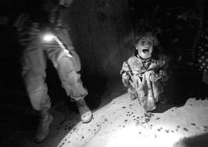 2005年1月18日,伊拉克塔爾阿法爾鎮(zhèn),一名女孩在大街上哭泣。當(dāng)日,這名女孩的父母被美軍士兵誤殺。
