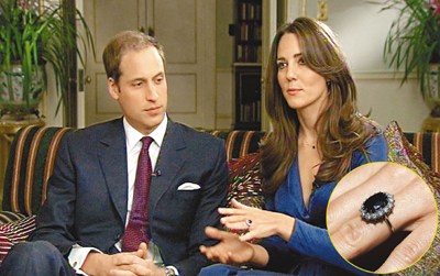 威廉王子與凱蒂向傳媒講述情路往事。凱蒂戴著戴妃的戒指。