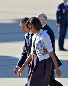 奧巴馬夫婦抵達(dá)發(fā)生嚴(yán)重槍擊案的亞利桑那州