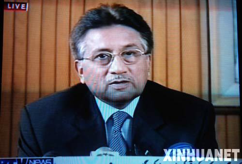 這張2008年8月18日攝自巴基斯坦國家電視臺的電視照片顯示,巴基斯坦總統穆沙拉夫向全國發表電視講話宣布辭職。 新華社發