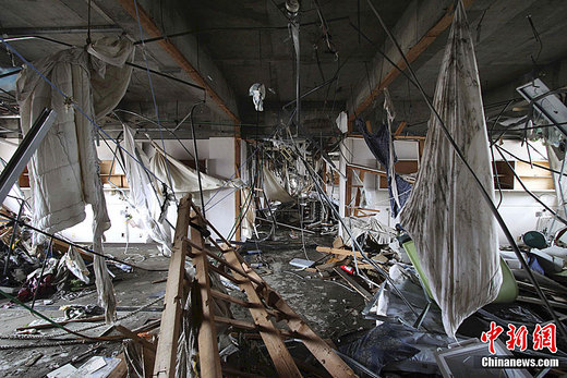 3月15日,日本9.0級大地震和海嘯發生后。日本宮城縣醫院病患被醫護人員救出,但是醫院還是受到了相當大的破壞。