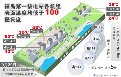 圖表:福島第一核電站各機組表面溫度均低于100攝氏度新華社發(fā)