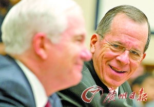 資料圖片:羅伯特-蓋茨和邁克-馬倫(右)向國(guó)會(huì)眾議院軍事委員會(huì)和參議院軍事委員會(huì)作匯報(bào)。