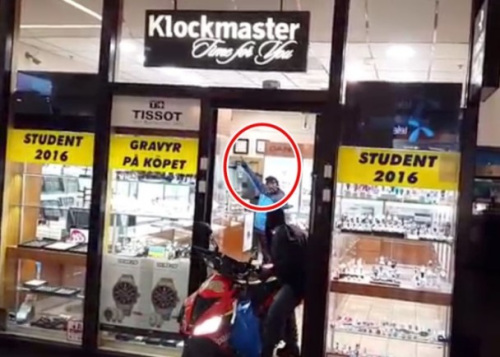 瑞典斯德哥爾摩兩名笨賊,上周打劫一間珠寶鐘表行時頻頻出洋相。