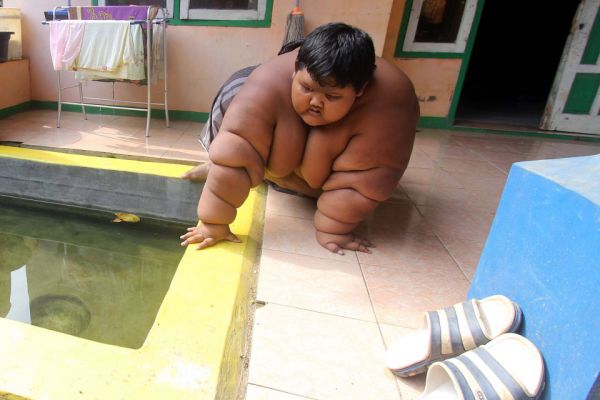據(jù)臺灣東森新聞云網(wǎng)站援引《每日郵報》報道,印尼西爪哇省10歲男童阿里亞出生時和一般嬰兒無異,然而5歲生了一場重病后,體型就產(chǎn)生了巨大的變化,加上胃口異于常人,一天得食用5餐以上,沒想到短短數(shù)年,體重一發(fā)不可收拾飆至192公斤,是同齡孩子的4-5倍,這讓他的父母親相當(dāng)困擾。