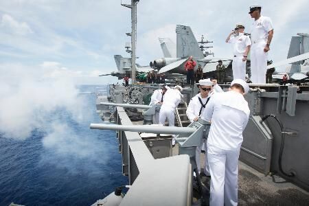 報道稱,“里根”號6月在菲律賓東部海域的西太平洋上,與“約翰·斯坦尼斯”號實施了雙航母聯合訓練。由里根號及隨行的宙斯盾驅逐艦等組成的第五航母打擊群指揮官約翰·亞歷山大少將指出:“美國海軍遵照國際法,在西太平洋實施航行、飛行及任務已超過一個世紀。今后也將繼續。”以此強調本次活動的正當性。