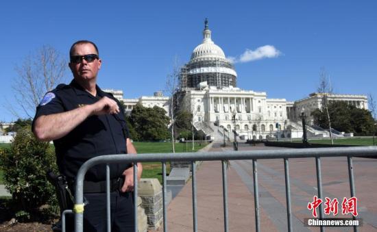 資料圖:警衛在國會山門口巡邏。中新社記者 張蔚然 攝