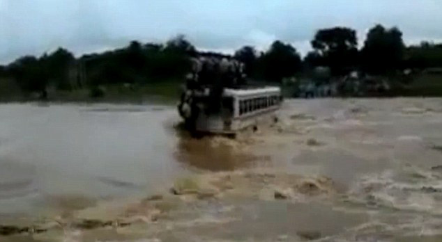 印洪水肆虐 載70人公交車過橋被洪水沖走(圖)