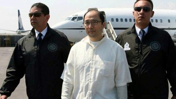 中新社休斯敦10月19日電 墨西哥籍華裔商人葉真理18日被從美國引渡回墨西哥,他將面臨參與制毒販毒等罪名的指控。墨西哥警方2007年曾經從其家中搜出2.05億美元現金,創造史上單次繳獲贓款最大金額。圖為葉真理被羈押回墨西哥。