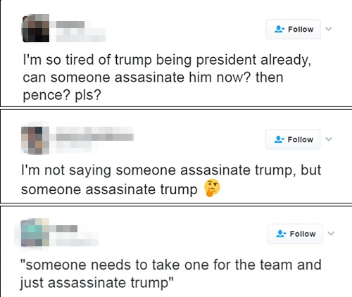 國際在線專稿:據英國《每日郵報》2月3日報道,實時社交網絡大數據分析企業Dataminr日前公布數據顯示,自從特朗普(Donald Trump)就職美國總統以來,在社交網站推特上,已經有12000多條推文呼吁將其刺殺。