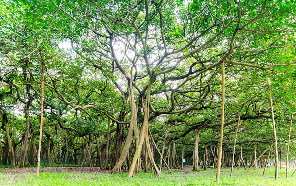 這棵位于印度豪拉植物園(Acharya Jagadish Chandra Bose Botanical Garden)的榕樹有250年的歷史,占地約1.4萬平方米,直徑達(dá)411米,有3600個(gè)氣根。該植物園圍繞這些氣根修建了道路,以便游客近距離欣賞。人們將其稱為“大榕樹”。