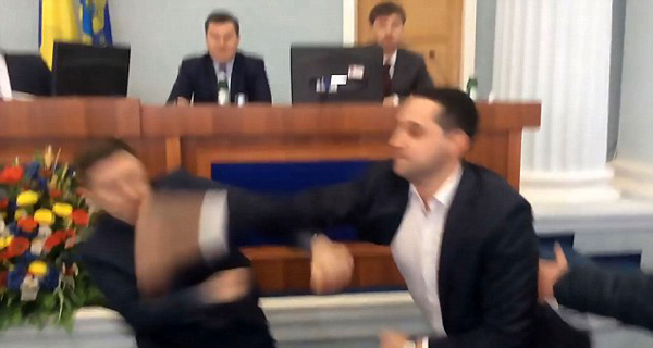 【環球網綜合報道】據英國《每日郵報》2月13日報道,近日,在烏克蘭切爾卡瑟地區議會上,自由黨領導人尤里(Yuri Botnar)因不滿客座嘉賓鮑里斯(Boris Lebedtsov)使用俄語作演講,不惜當場對其大打出手,場面一時頗為混亂。