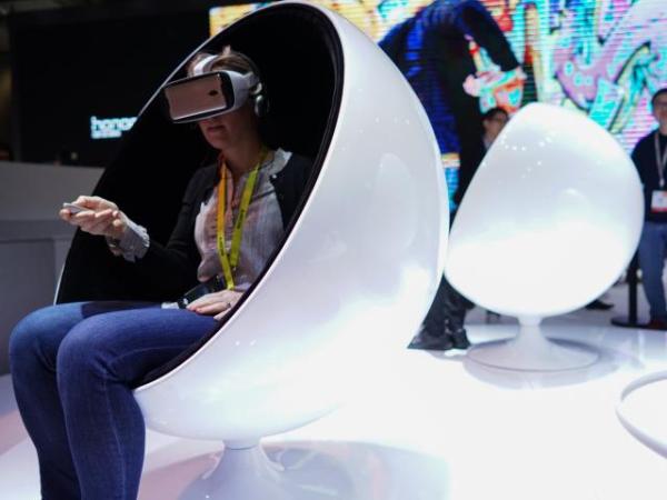 2017年1月5日,在美國拉斯維加斯消費(fèi)電子展上,參觀者使用華為手機(jī)體驗(yàn)虛擬現(xiàn)實(shí)技術(shù)。(新華社記者楊磊攝)