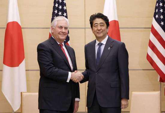 蒂勒森與安倍晉三的會談在16日傍晚進(jìn)行。雙方強(qiáng)調(diào)了在朝鮮核問題升級的背景下,美日同盟的重要性。