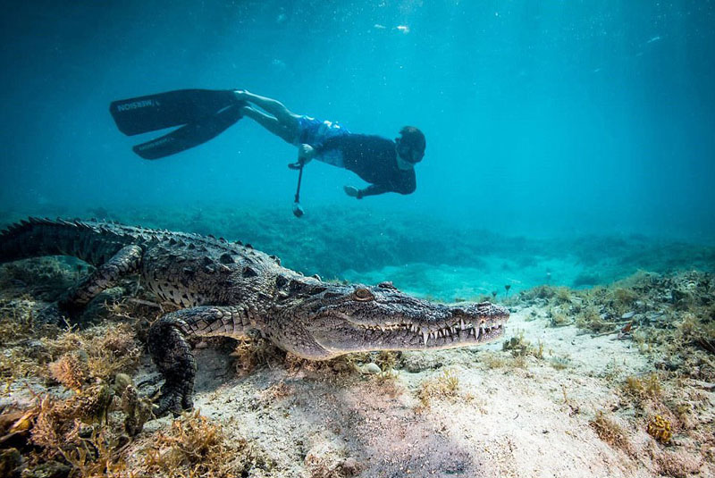 14歲的英國少年克里斯生日當天和父親在古巴一片沼澤中潛水,近距離接觸鱷魚并與其同游,爸爸則負責拍攝這珍貴的一幕。