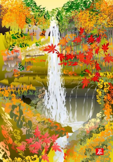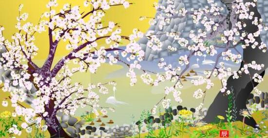 這位老爺爺名叫堀內(nèi)辰男。他的作品有櫻花、紅葉等日本元素,也有四季風(fēng)景,每一幅畫作都非常精美,引起了日本國內(nèi)外的關(guān)注。
