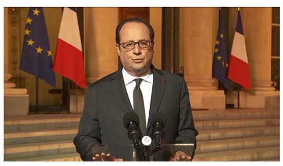 奧朗德發表電視講話:確認事件具恐怖主義性質,并宣布第二天早晨8點將召開國防會議,并表達全國人民對殉職警察的哀悼,對其家屬與受傷警察家屬深表慰問。據悉,事件導致一名游客受輕傷。(央視記者 江華 鄒合義 馬瑾瑾)