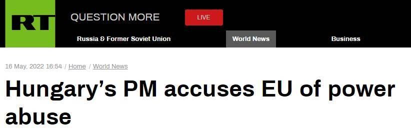 當?shù)貢r間16日,第五次當選匈牙利總理的歐爾班宣誓就職。RT說,他在向國會發(fā)表講話時以他一貫的方式、毫不留情地發(fā)表了上述嚴厲聲明。歐爾班認為,歐盟領(lǐng)導(dǎo)層正在尋求削弱各成員國的主權(quán),并建立“歐洲合眾國”。
