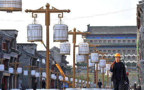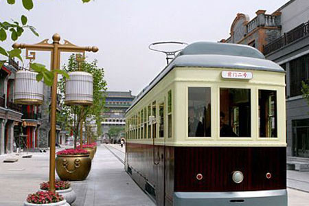 如果到游客們喜愛的琉璃廠古玩街參觀,也可能見到北京目前最神秘的建設(shè)工程:前門大街的復(fù)古改造。今后將在宏偉的前門城樓以南形成一條充滿中國特色的步行街。前門大街上還將開通有軌電車,首批車輛已經(jīng)開始試運(yùn)行。而大街兩側(cè)的傳統(tǒng)木質(zhì)建筑則在為同樣具有傳統(tǒng)味的旅游項目做廣告。