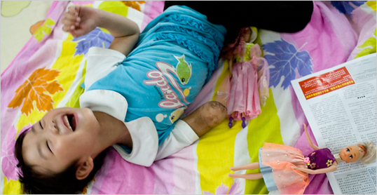 有些人沒有了胳膊或腿,有些人則失去地更多。他們都是四川地震的災民,現在在一家醫療中心學習如何使用義肢。
