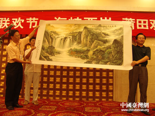 從南少林寺回到賓館,莆田接待工作組為臺(tái)灣來(lái)的客人們準(zhǔn)備了豐盛的晚宴和節(jié)目表演,現(xiàn)場(chǎng)氣氛熱鬧溫馨,臺(tái)灣十杰基金會(huì)和莆田市的代表還互贈(zèng)禮物留作紀(jì)念。(鐘寶華)